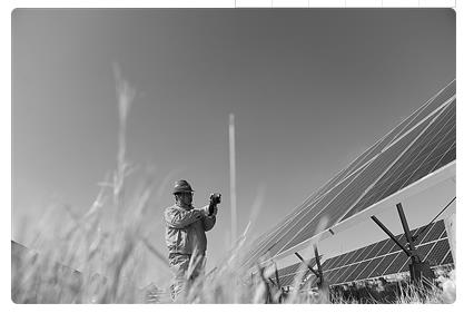 大唐青海能源開(kāi)發(fā)有限公司工作人員在青海省海南藏族自治州共和縣塔拉灘光伏電站巡檢。記者 張龍 攝